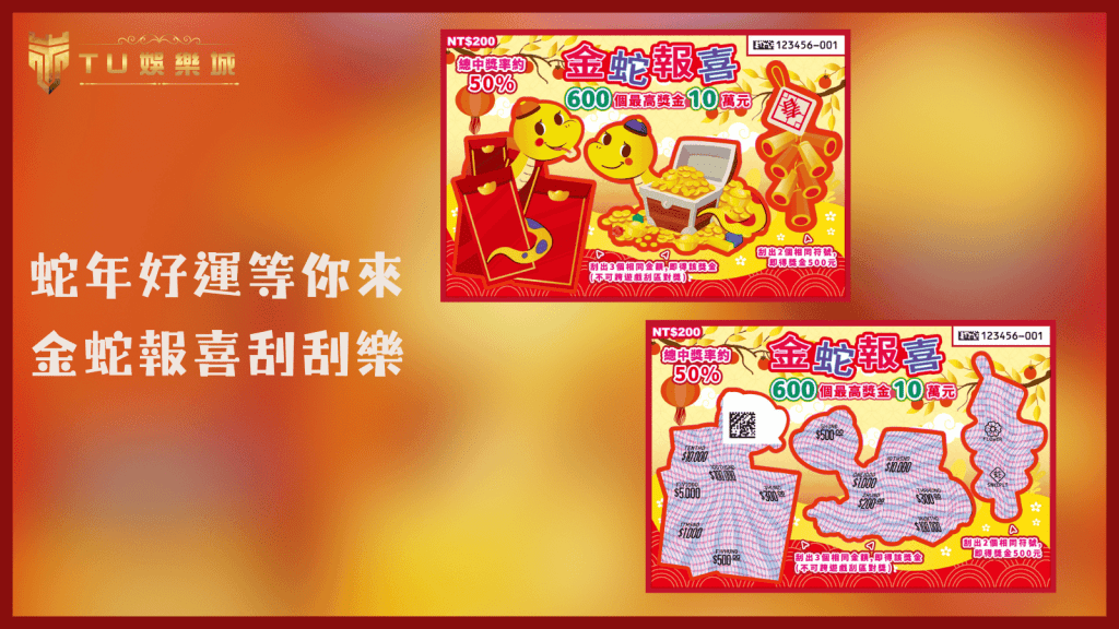 TU娛樂城2025刮刮樂推薦:蛇年好運等你來-金蛇報喜刮刮樂